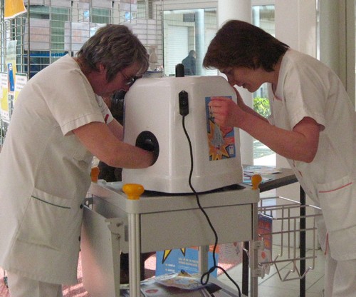 Le P ?le de Sant ? a achet ? une machine ? mains ! L’exp ?rimentateur se frotte les mains puis les introduit dans la machine : si elles sont bien d ?sinfect ?es, un observateur, plac ? en face, les voit bleues !