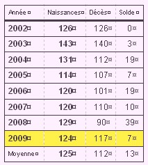En moyenne, sur 9 ans, le solde naturel n’est que de 16 personnes. L’objectif de la municipalit ? ?tait d’arriver ? 14 000 habitants en 2009 . Wouaf !