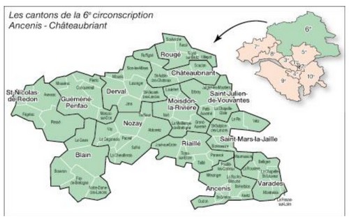 Notre circonscription, constitu ?e de 72 communes sur 13 cantons, est tr ?s ?tendue ? ; Ancenis, Blain, Ch ?teaubriant, Pays de Redon ? : ces bassins de vie ?conomique et sociale, diff ?rents et compl ?mentaires, ont des sujets communs et aussi des particularit ?s. Yves Daniel saura les prendre en compte et se mettre au service de l’ensemble des forces vives et des habitants de ces territoires.