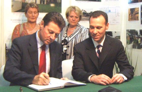 Christian Estrosi (à gauche) signe le livre d’Or de la Ville de Châteaubr