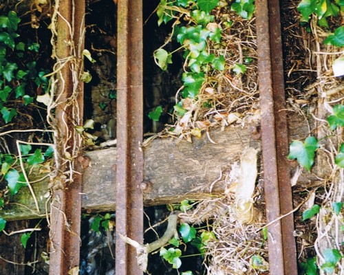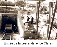 Les rails, verticaux, empruntés par les skips pour se hisser au sommet de l’estacade