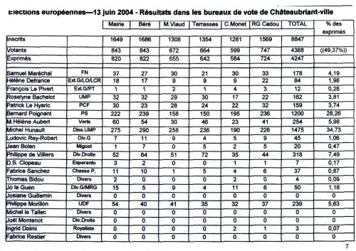 Le meilleur score ? Ch ?teaubriant est sans conteste celui de Michel Hunault, seul candidat t ?te de liste connu ici ? double titre : d’une part en raison de sa qualit ? de d ?put ? (et de la promotion syst ?matique dont il a b ?n ?fici ? depuis des mois dans l’hebdo g ?r ? par son beau-fr ?re) - et d’autre part en tant que fr ?re jumeau du maire de Ch ?teaubriant.