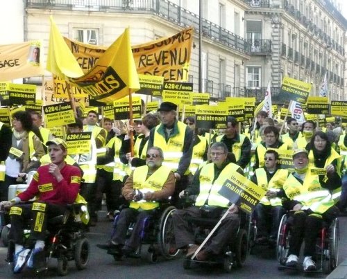 Le 29 mars 2008, le mouvement « Ni pauvre, ni soumis » regroupant une centaine d’organisations du champ du handicap, de la maladie et du secteur sanitaire et social rassemblait 35 000 manifestants, dont 750 de Loire-Atlantique, ? Paris pour exprimer l’urgence de cr ?er un revenu d’existence pour les personnes qui ne peuvent pas ou plus travailler en raison de leur handicap ou leur maladie, quels que soient leur lieu de vie et leur ?ge et un r ?el acc ?s au travail pour ceux qui peuvent travailler.