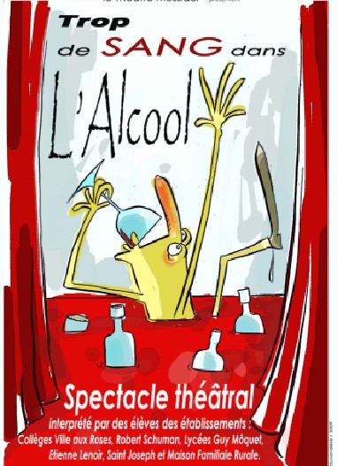 Les ?l ?ves volontaires ont ?t ? appel ?s ? apporter leurs t ?moignages anonymes sur ce qu’ils avaient pu vivre au sujet de l’alcool. c’est alors qu’une jeune fille a ?crit : « ?Trop de sang dans l’alcool ? ». Des sp ?cialistes (m ?decins, sociologues, scientifiques) ont donn ? un avis sur ce ph ?nom ?ne. Puis Alexis Chevalier a ?crit le texte d’une pi ?ce, pour donner une forme artistique ? ces t ?moignages, autour de th ?mes : boire, jusqu’o ? aller, comment est-on per ?u quand on boit, ou quand on ne boit pas, etc, en empruntant, au besoin, des textes litt ?raires (Raimbaud, St Ex). « ?Il s’agit d’un regard ext ?rieur, dit-il, rien de moralisateur ? ».