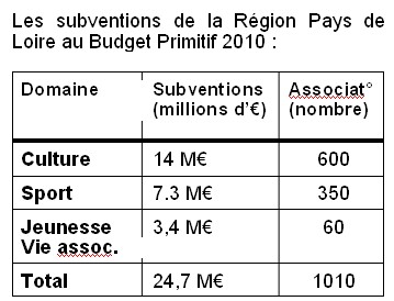 Les subventions de la R ?gion Pays de Loire au Budget Primitif 2010 :