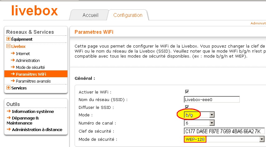 parce que b/g me permet de prendre un mode de sécurité ? WEP-128, ce qui correspondait au cryptage de mon ordinateur portable (2)