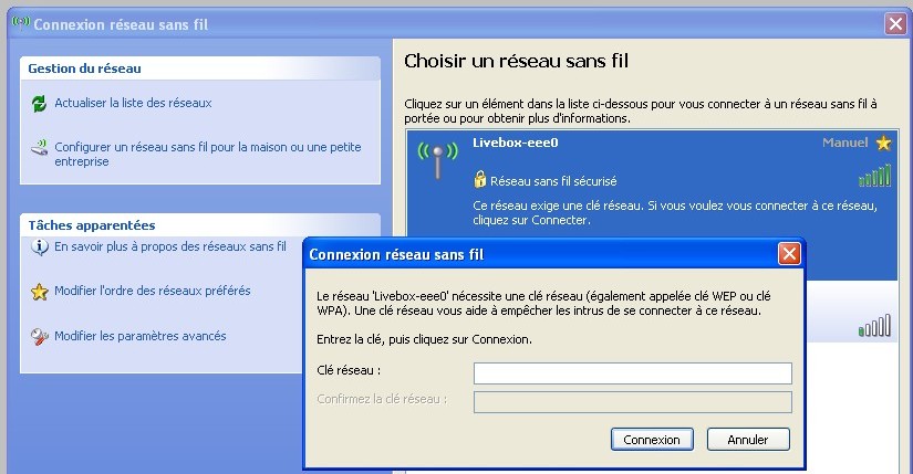 Là on me demande ma « clé réseau ». Celle-ci se trouve sur la Livebox.