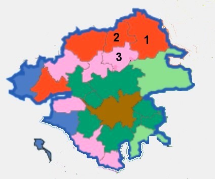 En rouge : Territoires les plus confront ?s ? la pr ?carit ? : on y reconna ?t les Com’Com de Ch ?teaubriant (1) et Derval (2)