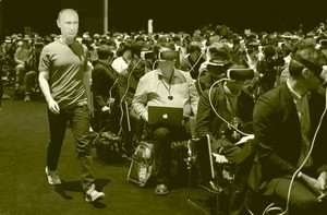 Mark Zuckerberg, le patron de Facebook s’est rendu au Mobile World Congress de Barcelone (27 f ?vrier-2 mars 2016), consacr ? au march ? du mobile. Sa venue n’a pas suscit ? d’applaudissements parce que les participants ?taient assis, voire zombifi ?s par le casque de r ?alit ? virtuelle qu’ils avaient sur les yeux. (voir photo)