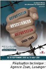 Les expositions, au Mus ?e de la R ?sistance ? Ch ?teaubriant, sont toujours en lien avec le Concours National de la R ?sistance. L’expo « ?l’appel du 18 juin ? » est d ?sormais d ?mont ?e (mais peut toujours ?tre emprunt ?e !) et remplac ?e par 12 panneaux sur le th ?me « ?r ?pression-R ?sistances-r ?pression ? ».