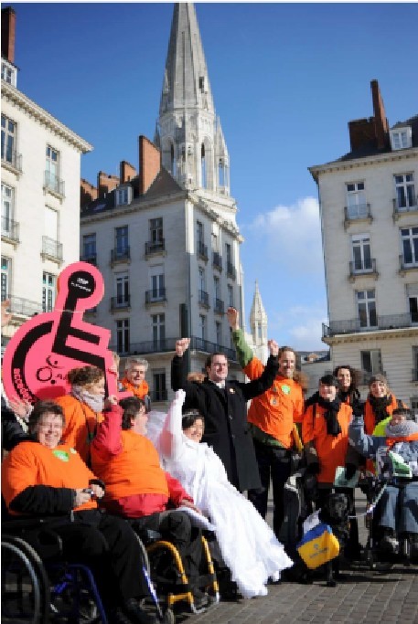L’APF en Loire-Atlantique s’est mobilis ?e le vendredi 11 f ?vrier, date du 6e anniversaire de la grande loi handicap du 11 f ?vrier 2005 : les Mari ?s de l’accessibilit ? , un an apr ?s