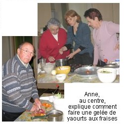 Anne Lecointe , explique : « je ne suis pas di ?t ?ticienne, je suis animatrice en cuisine ». Ce n’est pas vraiment facile de faire un cours de cuisine dans une salle de r ?union. « J’emporte tout : r ?chaud, petit four, casseroles, verre doseur, planche ? d ?couper, etc ».