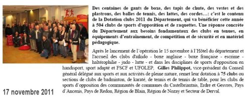Aide aux clubs pour la formation de leurs cadres b ?n ?voles : 70 ? ? l’amicale la ?que de Ch ?teaubriant, m ?me chose ? Ch ?teaubriant-tennis de table, 300 ? au club nautique castelbriantais,60 ? ? l’esp ?rance sportive de Roug ?, 90 ? ? Nozay-Omnisports.