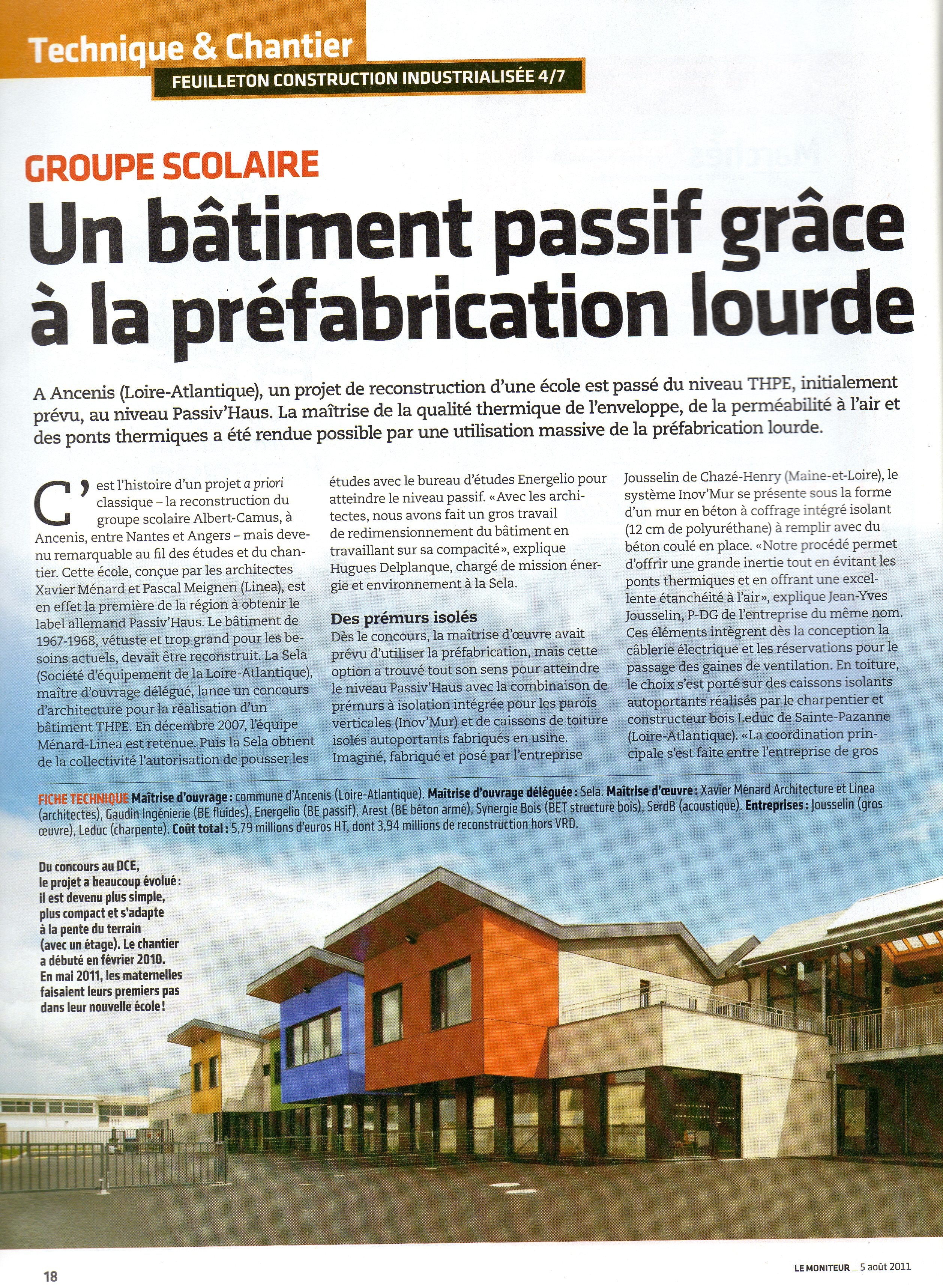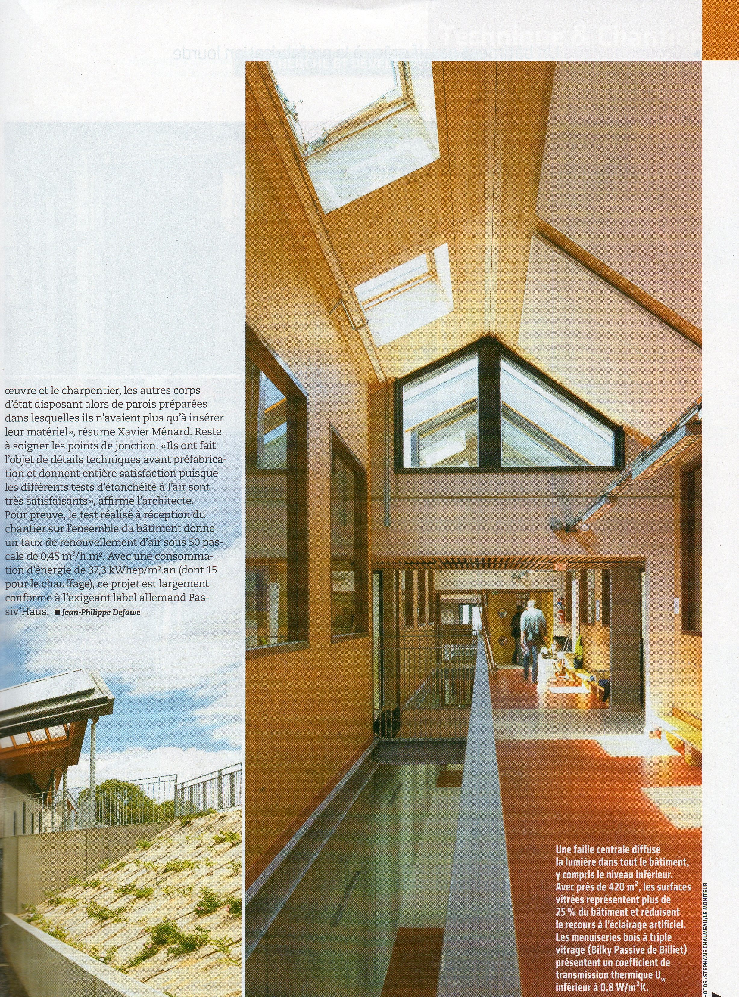 Rien d’ ?tonnant donc ? ce que Xavier m ?nard se soit int ?ress ? au b ?timent passif. L’agence vient de livrer un groupe scolaire labellis ? « Passiv’haus » ? Ancenis (44) et travaille sur quatre op ?rations de logements visant le m ?me label. A Mouais, une petite commune de 350 habitants proche de Ch ?teaubriant, Xavier m ?nard pousse m ?me l’exp ?rimentation en construisant une salle multi-fonctions (...) jouant avec diff ?rents syst ?mes constructifs (ossature bois, briques de terre crue, parpaings) et avec de l’isolation en paille. L’ ?quipement co ?tera 1,2 million d’euros HT et pour Xavier m ?nard, il n’est pas question de d ?passer le budget. « C’est pour moi un sujet prioritaire, surtout en cette p ?riode de crise. Nous devons gagner en cr ?dibilit ? ?conomique car il est de la responsabilit ? de l’architecte de rentrer dans le budget » conclut l’architecte-entrepreneur ?g ? de 63 ans. Un message qu’il tente de faire passer ? son ?quipe dont deux associ ?s qui devraient reprendre l’agence.