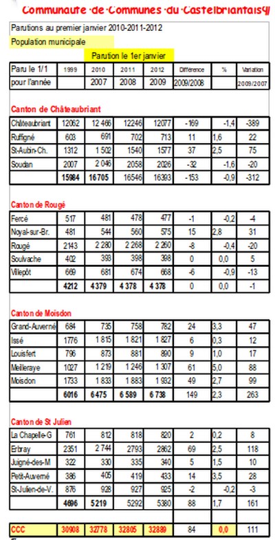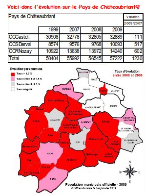 Ainsi sur 33 communes du Pays de Ch ?teaubriant, l’ ?volution de population entre 2008 et 2009 est la suivante :