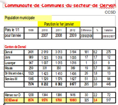 Toutes les communes de la CCSD sont en progression, notamment Derval, Mouais, Sion-les-Mines. Progression plus forte que l’ann ?e pr ?c ?dente. La Com’Com de Derval a gagn ? 517 habitants en deux ans [quand celle de Ch ?teaubriant n’en a gagn ? que 111], il serait int ?ressant de savoir si les nouveaux habitants viennent de Nantes, ou de Rennes.