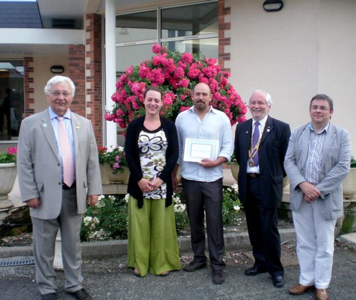 Le pr ?sident Jean Fran ?ois Rose a renouvel ? ses f ?licitations ? ce jeune artisan pour l’originalit ? de son entreprise et la grande motivation qui l’habite pour recycler les anciennes charpentes en bois ou en m ?tal mais aussi garder le c ?t ? traditionnel de son m ?tier. Ne travaille-t-il pas toujours au rabot, ? la varlope, au b ?dane et au ciseau ? bois pour que ses poutres gardent leur cachet d’ancien ?!