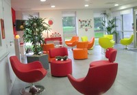 Les chambres sont dispos ?es autour de l’espace central et l’un des c ?t ?s du triangle accueille les services de baln ?oth ?rapie et l’espace multi-sensoriel « ?snoezelen ? ». Pourvoir prendre un bain, avec accompagnement de musique douce, quelle merveille ! La pi ?ce sent bon et des images de ciel ?toil ? d ?filent lentement.