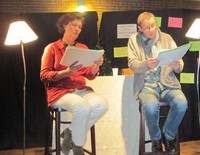 Pour sa semaine de pr ?vention des m ?faits de l’alcoolisme, la municipalit ? de Ch ?teaubriant avait invit ? le Biblioth ??tre de St Barth ?l ?my d’Anjou pour chanter les plaisirs du vin. Les deux com ?diens, Nicolette et Herv ?, (voir photo) ont d’abord c ?l ?br ? le temps des vendanges et le vin bourru (Texte de JC Carri ?re), puis le vin de Paris (Marcel Aym ?) avant d’emprunter une chanson ? Josquin des pr ?s. Et puis le voyage en gourmandise (Chantal Pelletier), s’est poursuivi avec Repas de f ?te (F.Bartelt in Plut ?t le dimanche), l’aquaphile (Pierre Desproges, chroniques de la haine ordinaire), le connaisseur (R.Dahl, Bizzare bizzarre) et pour finir : le Paradis (JM Laclavetine, le rouge et le blanc).