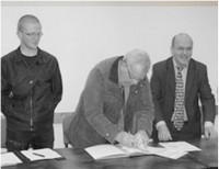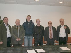 Accompagn ? de Jean-Louis Dornier, Directeur de la MLNA et de Jean-Luc Lemeunier, Directeur de P ?le Emploi Ch ?teaubriant, le Sous-pr ?fet a tenu ? r ?affirmer l’engagement de l’Etat en signant deux contrats avec Jean-Pierre Juhel, maire d’Erbray. Deux jeunes de 21 et 22 ans, ont ?t ? ainsi recrut ?s par la Commune d’Erbray ? compter du 1er mars 2013.