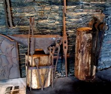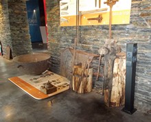 On peut voir aussi quelques outils, des animations vid ?o (par exemple : les soufflets de forge anim ?s par des roues ? ?nergie hydraulique). Un vaste plan repr ?sente le site de la Forge avec des lumi ?res situant les prairies s ?ches, affleurements de schiste, asphod ?les, etc.