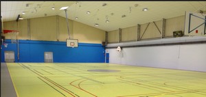Les trac ?s au sol dessinent 5 terrains de badminton, 2 terrains de basket et 3 terrains de volleys. Les buts de handball, rabattables le long du mur, donneront plus de s ?curit ? aux joueurs tout en facilitant le nettoyage.