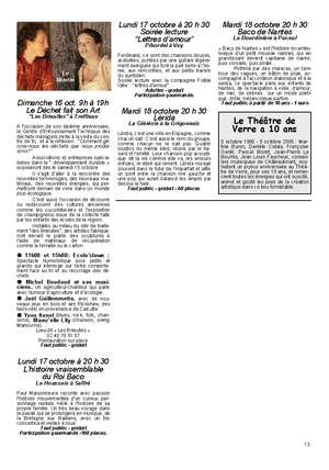 Spectacles, randos, go ?ter joyeux, veill ?es avec participation gourmande, musiques vertes et orgue de barbarie, th ??tre, soir ?es-d ?bat, soir ?es-lecture et cin ?ma. Demandez le programme !