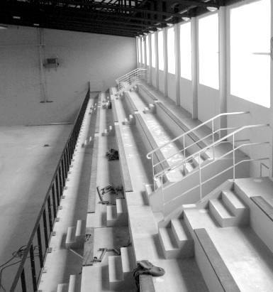 Les salles ont ?t ? enti ?rement refaites, du sol au plafond, avec peintures de couleur vive, vestiaires, sanitaires et rangements sp ?cifiques. l’acc ?s aux tribunes, o ? le garde-corps sera vitr ?, est asssur ? par la pr ?sence d’un ascenseur et d’une plateforme d’accueil. L’isolation du b ?timent a ?t ? renforc ?e.
