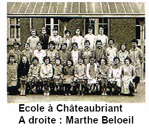 Finalement Marthe est nommée à Châteaubriant à l’école Aristide Briand en classe de fin d’études, classe dont personne ne voulait, parce que c’étaient des enfants en difficulté ou mal orientés. « Ce fut mon bonheur, même s’il me fallait expliquer aux enfants le fonctionnement du pédalier, de la pompe aspirante et du moteur à quatre temps, sujets techniques qui ne m’étaient pas familiers ». À cette époque, il y avait un programme « rural » et un programme « urbain » et des activités manuelles différentes pour les garçons et les filles. Dans le programme rural, par exemple, on calculait le volume d’une fosse à lisier et le fonctionnement de la brouette, le réglage d’un trusquin et les soins à donner à une vache malade.