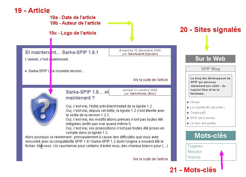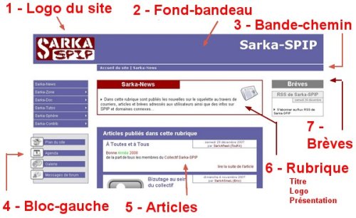 6) Rubrique. On trouve l� le titre de la rubrique, le logo qu’on peut mettre en ?crivant la rubrique, et le contenu de la rubrique.