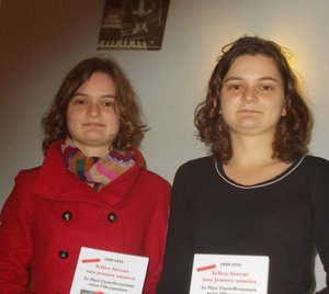 Elles ont 19 ans et viennent de Chantonnay (Vend ?e). Deux fois laur ?ates du Concours National de la R ?sistance, ?tudiantes en ’’valorisation du patrimoine’’ ? l’universit ? de Saumur, elles ont eu envie d’approfondir leurs connaissances. Laura Ajot, la premi ?re, a trouv ? un stage de trois mois au Mus ?e de la R ?sistance ? Ch ?teaubriant. Tr ?s bien accueillie par Mimi Nunge et les Amis du Mus ?e, elle a su guider les visiteurs (notamment lors des c ?r ?monies du 25 octobre 2015) et a particip ? ? la r ?alisation de l’exposition "R ?sister par l’art et la culture’’. Elle a par ailleurs, avec m ?lanie, pr ?par ? un article ? para ?tre dans la revue ’’Notre mus ?e’’ en 2016.