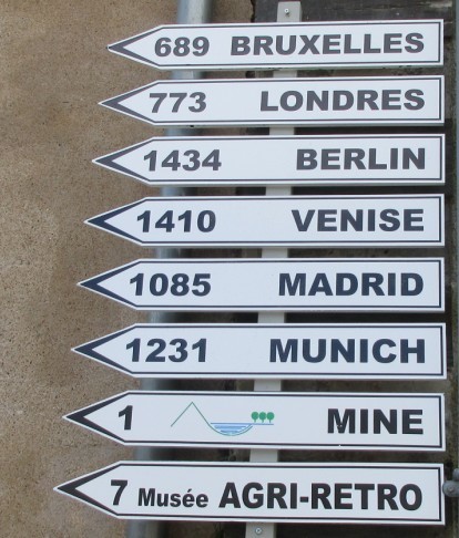 A proximit ?, une pancarte indique de grandes directions ? : la mine d’Abbaretz, le Mus ?e Agri R ?tro et Berlin, Bruxelles, Venise ... histoire de montrer qu’on n’est pas coup ? du monde.