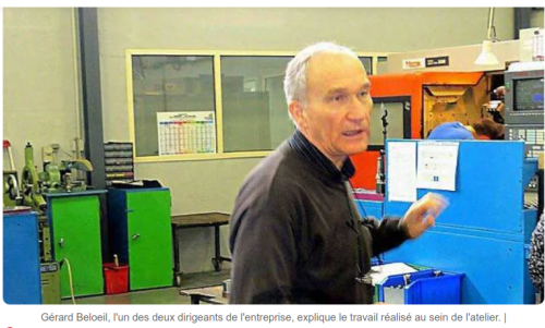 Gérard Beloeil, l’un des deux dirigeants de l’entreprise, explique le travail réalisé au sein de l’atelier.