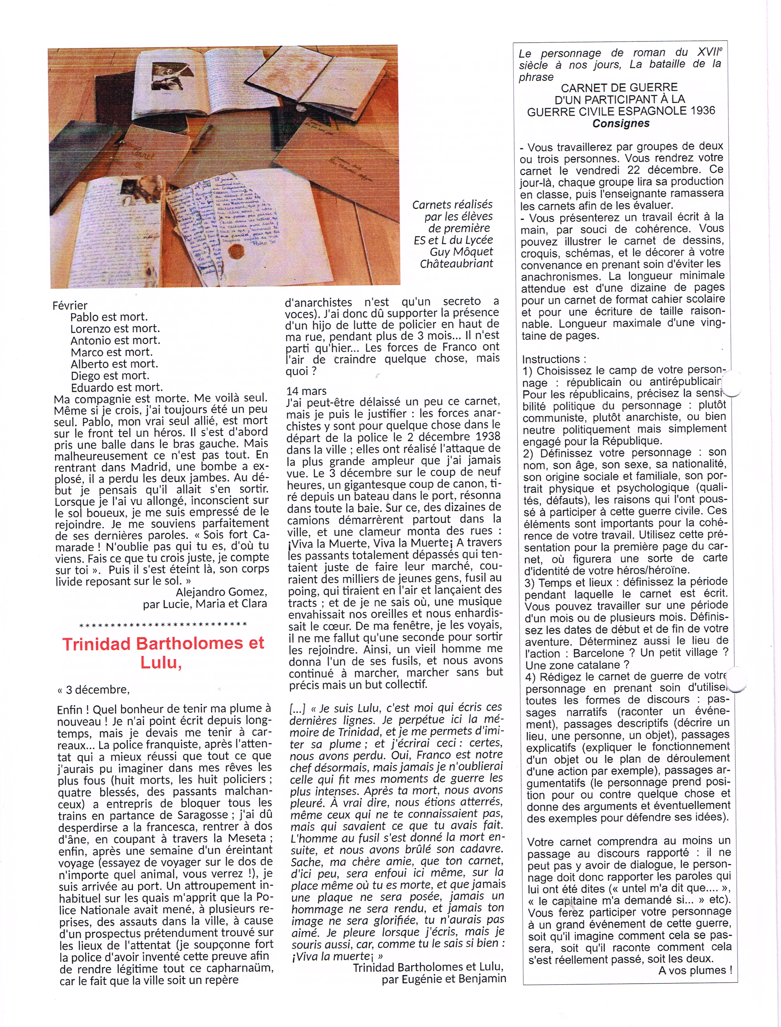 Accueil > Châteaubriant > Enseignement, formation > d. Lyces > Lyce Guy Môquet > La guerre d’Espagne s’invite à Môquet
