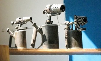 Il y avait la lampe ? carbure utilis ?e dans les mines ou les chemins de fer, ou en Am ?rique pour les chasseurs et trappeurs. Mon p ?re menuisier travaillait avec. [Ndlr ? : ? signaler ? : la lampe de marque Ponzevera fabriqu ?e sp ?cialement pour le milieu hospitalier. Le logo de la marque repr ?sente un caduc ?e sur lequel s’enroule un serpent. Comme le souligne le Dr Jean Belin dans son ouvrage : « Combats pour la vie, L’H ?tel-Dieu de Clermont-Ferrand », les salles op ?ratoires ?taient ?quip ?es de g ?n ?rateurs ? ac ?tyl ?ne pendant la seconde guerre mondiale afin de b ?n ?ficier de lumi ?re tr ?s rapidement en cas de coupure d’ ?lectricit ? alors tr ?s fr ?quentes. Ce type d’appareil a aussi pu ?tre utilis ? dans les ambulances ou h ?pitaux de campagne. l’avantage de ces g ?n ?rateurs ? ac ?tyl ?ne c’est qu’ils fonctionnaient gr ?ce ? un syst ?me d’immersion. Le carbure ?tait contenu dans un panier qu’il suffisait de plonger dans l’eau pour g ?n ?rer imm ?diatement de l’ac ?tyl ?ne].