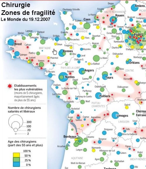 Le p ?le de sant ?, menac ? ?Ce n’est pas encore une menace pr ?cise, mais un article du Monde du 19 d ?cembre 2007 ?voque une « n ?cessaire restructuration » aussi bien de cliniques que des h ?pitaux. " La tarification ? l’activit ? (T2A), qui lie le financement des h ?pitaux et cliniques au nombre d’interventions pratiqu ?es, risque de modifier profond ?ment l’offre de soins. Selon la FHF (f ?d ?ration Hospitali ?re de France), les unit ?s de chirurgie ne r ?alisant pas 4 000 interventions par an, y compris en ambulatoire, ainsi que les maternit ?s sous le seuil des 1 000 accouchements n’atteignent pas un seuil de « rentabilit ? » suffisant. Ce risque de fragilit ? est d’autant plus ?lev ? lorsque la rel ?ve de praticiens ?g ?s (+ 55 ans) dans ces sp ?cialit ?s (auxquels il convient d’ajouter les anesth ?sistes et radiologues) n’est pas assur ?e. L’h ?pital d’Ancenis est class ? parmi les plus vuln ?rables. Le p ?le de sant ? de Ch ?teaubriant est ? la limite. Nous n’avons pas pu avoir le nombre d’actes chirurgicaux annuels mais il est sans doute inf ?rieur ? 4000. Par ailleurs la Maternit ? est loin des 1000 naissances (792 naissances en 2006). |