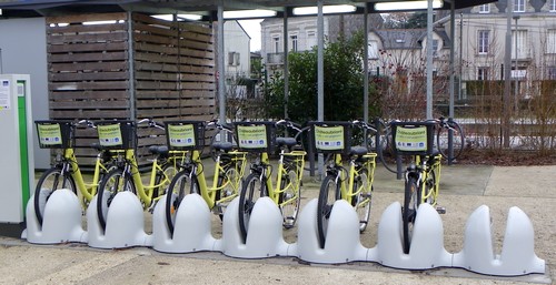 Notre commentaire : tr ?s bien pour les voyageurs qui arrivent ? la gare mais comment utilisent-ils ce v ?lo ? Si c’est pour aller en centre-ville, ?a va. Un euro la demi-heure et on pose le v ?lo. Mais si c’est pour rejoindre son lieu de travail, cela peut faire 4 heures, soit 8 ?. Prohibitif ! Quant aux voyageurs occasionnels ils ne pourront s’en servir que s’ils ont un smartphone. [remarque : le conseil communautaire de d ?cembre 2018 a fix ? un nouveau tarif : un euro de l’heure, quelle que soit la dure. Ca c’est mieux)