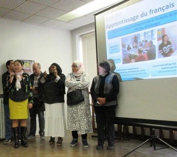 l’apprentissage du fran ?ais est une activit ? fortement inclusive et culturelle ? : 56 personnes (de 29 nationalit ?s), 12 b ?n ?voles, qui se partagent entre les Ateliers Socio Linguistiques ( 2 matin ?es/semaine, 4 niveaux de cours) et le Cours intensif de FLE (Fran ?ais Langue Etrang ?re) ? : 4 demi journ ?es/semaine, 10h/semaine de d ?cembre ? avril.