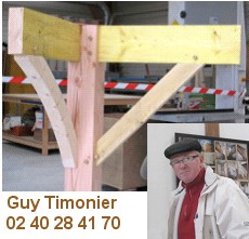 Il y a douze ans, Guy Timonier ?tait licenci ? de l’entreprise Provost. c’est alors que, sous l’impulsion de Martine Buron (qui ?tait pr ?sidente de la Com’Com’ de Ch ?teaubriant) a ?t ? lanc ?, le 11 mai 1995, un « fonds d’initiative locale » qui conna ?t maintenant un grand succ ?s. Guy Timonier a ?t ? l’un des premiers salari ?s ? s’installer ? son compte. Il ne le regrette pas, ses clients non plus. Tous les ans, ? la Foire de B ?r ?, on peut voir des photos de ses r ?alisations.