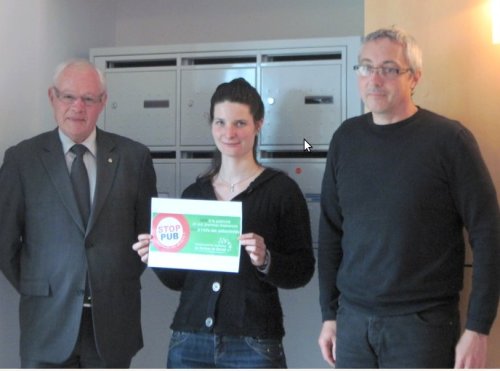La Com’Com’ de Derval a ?t ? pionni ?re en mati ?re de d ?chets, en lan ?ant la redevance incitative. « ?Nous sommes maintenant ? 99 kg/habitant au lieu d’une moyenne nationale de 360 kg ? » dit le responsable Yvan g ?rard. Pour aller plus loin et r ?duire les apports en d ?p ?t volontaire, la Com’Com’ a embauch ? Nolwenn Brohon, charg ?e de la « ?pr ?figuration du programme local de pr ?vention des d ?chets ? ». C’est dans ce cadre qu’a ?t ? lanc ?e l’op ?ration « ?stop-pub ? » pour indiquer clairement aux distributeurs de prospectus le refus de recevoir des publicit ?s non d ?sir ?es (car il est entendu que les bulletins municipaux ne seront pas concern ?s).