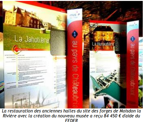 Dans le cadre du programme Leader-Feader, le Pays de Ch ?teaubriant a ?t ? dot ? de 1 100 000 ? sur la p ?riode 2009-2013. Et 828 011 ? d’aide ont ?t ? accord ?s ? 52 projets depuis le d ?but du programme. Le 19 ao ?t 2013 le Pays de Ch ?teaubriant a obtenu une rallonge de 80 000 ?.