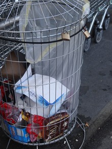 Mais que signifient, ? Ch ?teaubriant, devant une sup ?rette, ces deux cadenas accroch ?s ? une poubelle ?