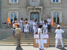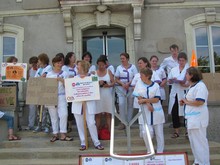 A Nozay, une trentaine de salari ?s ont d ?bray ?. Une dizaine d’autres ?taient en soutien ? Ch ?teaubriant + le soutien de quelques familles de r ?sidents. Slogans des banderoles : « Solidarit ? pour nos a ?n ?s », « Non aux ?conomies, Oui aux projets de vie », « EHPAD Nozay, pas au rabais », « Dignit ? pour nos personnes ?g ?es ». ...