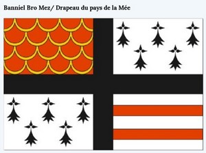 L’association Hento ? Breizh (les Chemins de Bretagne) vient de cr ?er un drapeau pour le Pays de la M ?e. Le pays de la M ?e, Bro Mez, est une des cinq subdivisions historiques du Pays Nantais appel ? ?v ?ch ? de Nantes ou Bro Naoned (grossi ?rement la Loire:Atlantique). Il se situe au nord de la Loire, entre le Pays de Gu ?rande et le Pays d’Ancenis. Il partait des portes de Nantes jusqu’aux limites du Pays Rennais. Le Grand-Fougeray faisait partie du Pays de la M ?e. Plus ? l’est, il c ?toie les fronti ?res du duch ? d’Anjou. Son nom vient du celtique ancien « mediolanon » qui signifie « le milieu », effectivement il est bien le pays du milieu. Il comporte deux fiefs principaux, Ch ?teaubriant (Kastelbriant) et Derval (An Derv, signifiant le ch ?ne en breton).
