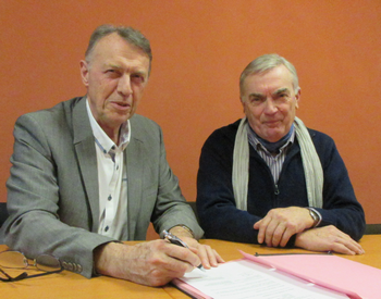 Les conventions ont ?t ? sign ?es par g ?rard Haulbert (RAP ) et Alain Hunault (CCAS ) avec Bernard Hary pr ?sident du conseil d’Administration de la CAF et Elisabeth Dubecq-Princeteau, Directrice.