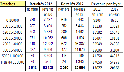 Les contribuables retrait ?s ont en moyenne des revenus inf ?rieurs ? ceux des actifs. Mais, dans la p ?riode, l’augmentation du nombre de retrait ?s a conduit ? une augmentation de 30 ?% environ du revenu des m ?nages.