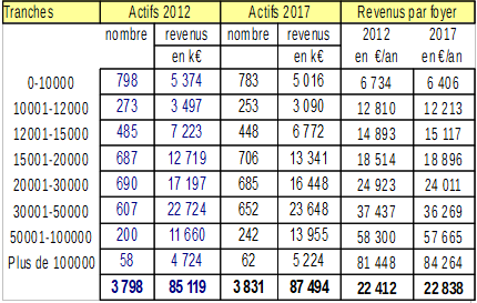 On ne peut comparer 2007 et 2017 car les tranches de revenus ont ?t ? modifi ?es. Comparons donc 2012 et 2017.