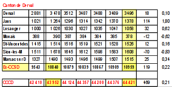 Dans la CCCD, seules quatre communes connaissent une belle ?volution ? : St Aubin des Ch ?teaux, Louisfert, La Meilleraye et Jans. Ce ne sont pas forc ?ment les mieux ?quip ?es du territoire. Reste ? savoir ce qui attire les populations. A noter que dix communes sur 26 ont une perte de population.